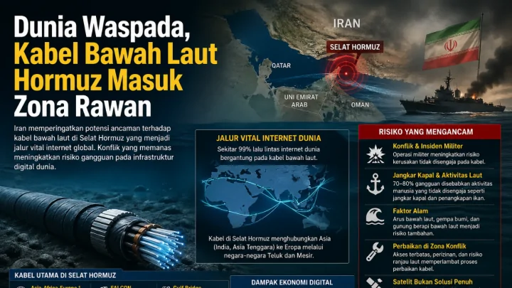 Terkini, Dubai — Pemerintah Iran memperingatkan potensi ancaman terhadap kabel bawah laut di Selat Hormuz yang menjadi salah satu infrastruktur paling krusial bagi konektivitas internet global.