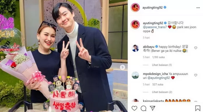 "Aigoo, saranghae gomawoyo (Ya ampun, aku mencintaimu. Terima kasih)," tulis Ayu Ting Ting.