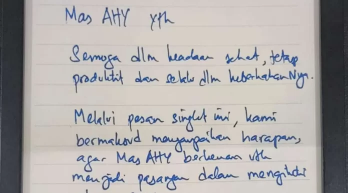 Surat yang diduga ditulis tangan oleh Anies itu pun berisi permintaan kesediaan kepada AHY untuk menjadi Cawapres pendamping Anies Baswedan di Pilpres 2024 mendatang.
