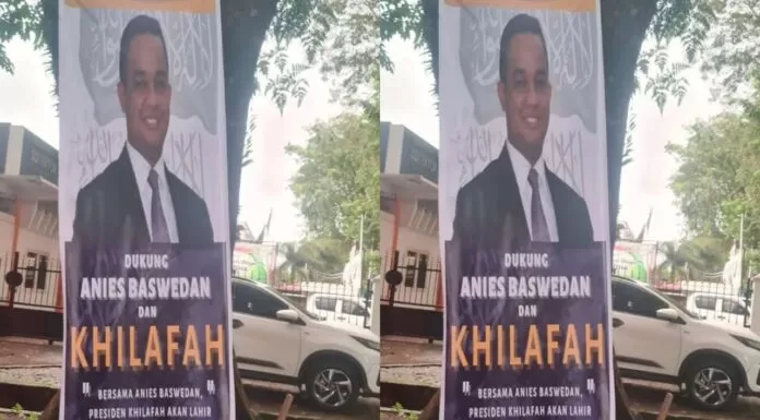 Sementara narasi yang terdapat di baliho itu, tertulis imbauan untuk mendukung Anies dan sistem Khilfah.