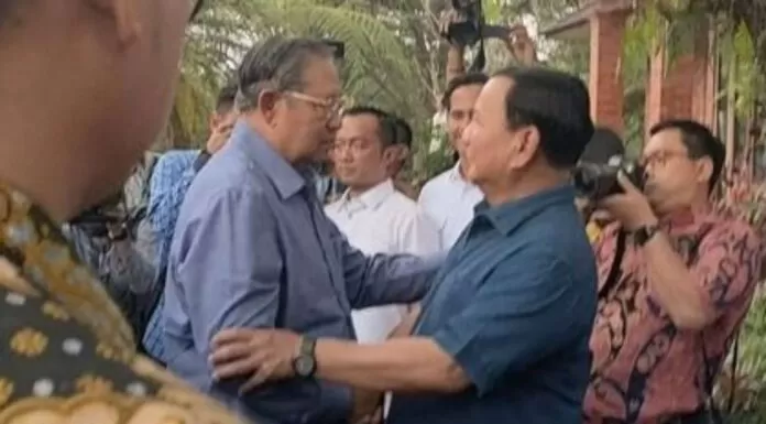 Terkini.id, Jakarta - Partai Demokrat disebut dukung Prabowo Subianto di Pilpres 2024, hal itu dikabarkan usai Ketua Majelis Tinggi Demokrat Susilo Bambang Yudhoyono atau SBY melakukan pertemuan dengan Ketua Umum Gerindra itu di Hambalang, Bogor, Minggu, 17 September 2023.