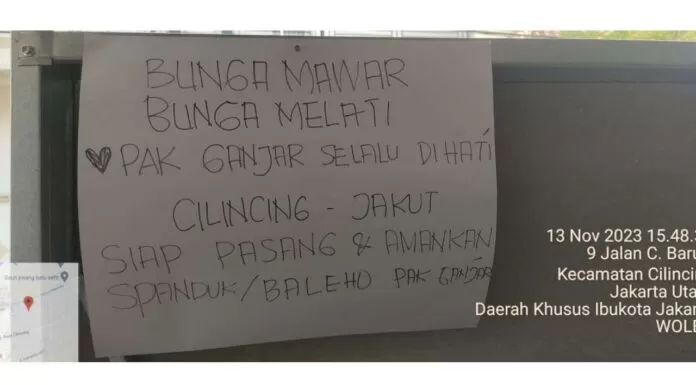 Selain video, banyak pula foto-foto yang beredar berisi tulisan pada kertas atau media lainnya, berisi pernyataan senada. Misalnya, foto yang diambil dari sebuah rumah di wilayah Kecamatan Rawamerta, Kabupaten Karawang, Jawa Barat (Jabar). Dalam foto itu terdapat tulisan: ‘Rumah ini sangat siap dipasangi baliho Ganjar-Mahfud’.