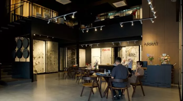 Didesain oleh arsitek asal Semarang, Studioreka, dan dibalut interior berkonsep industrial karya Studio Y+ Interiors dari Makassar, Showroom Array menonjolkan kemewahan display produk sintered stone Quadra yang menyatu dengan konsep desainnya.