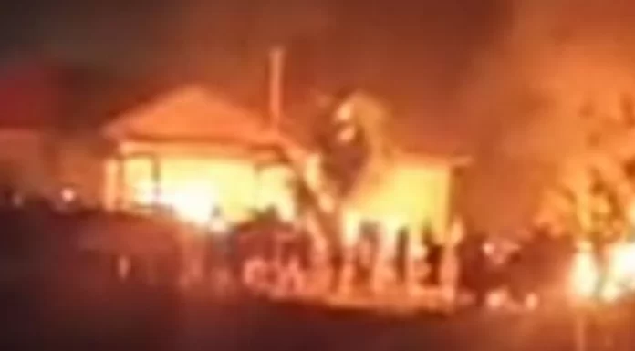 Api tiba-tiba berkobar dan melahap sebagian ruangan disaat warga mendesak polisi untuk segera menangani dan memberantas aksi pembegalan.