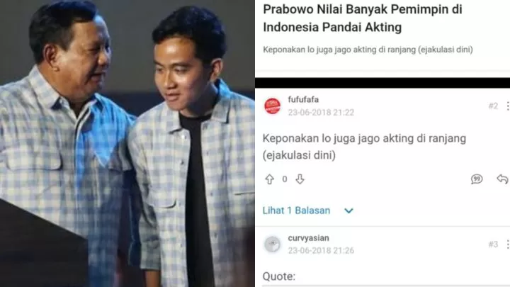 "Keponakan lo juga jago akting di ranjang (ejakulasi dini)," komentar akun Kaskus fufufafa.